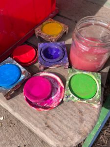 Wenn wir Bastelarbeiten herstellen, tun wir dies bevorzugt mit Naturmaterial wie Stöcken, Moos und Erdfarbe.